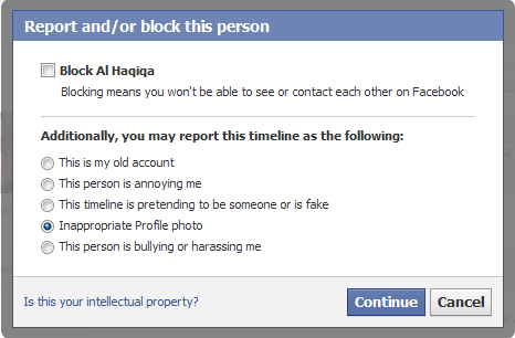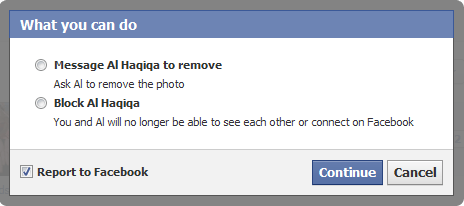 5. Another screen will appear, select, “Report to Facebook“. Then click, “Continue“.