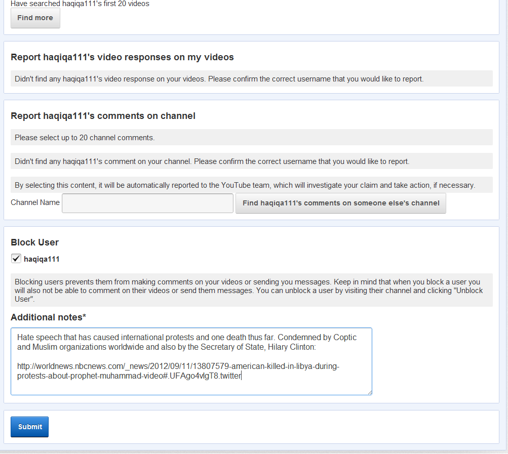 Note: Calling Christians does not endorse the violent protests or killings as a result of these hate videos. Our response has been to respectfully apply for the removal of the videos, hence our above tutorial.