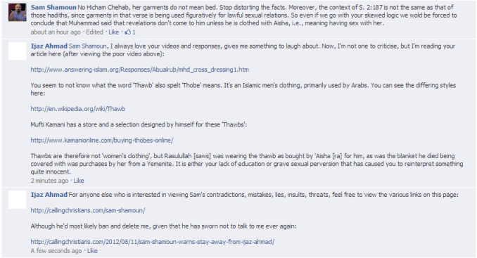 To the Christians who appeal to him, what does his behaviour demonstrate to you? Is he ‘defending’ the Gospel by running from his critics and detractors? David Wood (Sam’s buddy) who preaches ‘freedom of speech’ and who swears to defend ‘human rights’, why won’t he teach Sam to allow criticism of his uneducated statements? In fact, directly after Sam deleted my comments, he then posted a barrage of insults, abuses, curses which I have chosen not to reproduce. If you would like to see evidence of his lowly character click this link. In all honesty, I do not know Sam personally, but if this is the way he ‘preaches’, it explains why so many Christians who have never heard Muslim arguments, come to our pages and for the first time experience a real discussion. Sam’s gestapo – like tactics can only benefit Muslims, as these same Christians of whom he shelters on his page, try to take his arguments elsewhere and are then soundly debunked, opening their hearts and minds to Islam.
