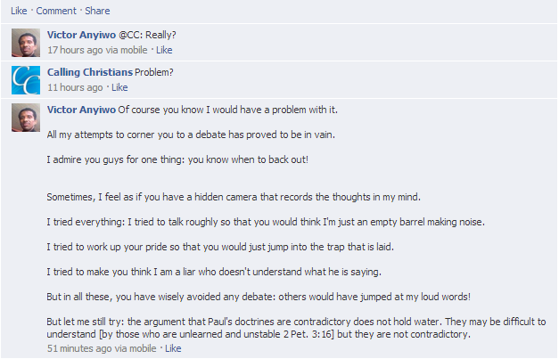 victorfb Posted on December 28, 2012 by Ijaz Ahmad Leave a comment Next Return to A Christian Learns that Muslims do not Succumb to Childish Tactics [Updated!]