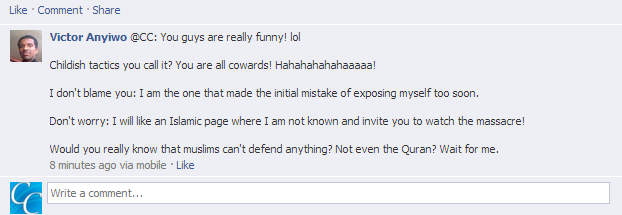 victorfb1 Posted on December 28, 2012 by Ijaz Ahmad Leave a comment Previous Return to A Christian Learns that Muslims do not Succumb to Childish Tactics [Updated!]