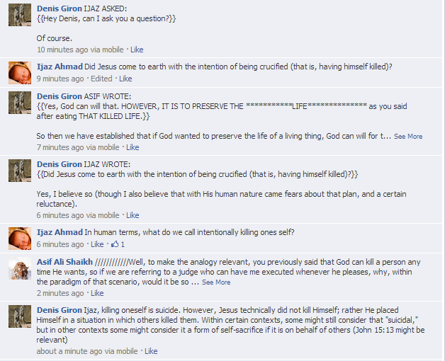 The following responses are by the former Atheist and Islamophobe, now quasi-Catholic anti-Muslim Denis Giron – located here.