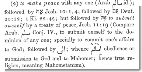 We find the above to be quite revealing, for even Biblical commentators accept that Islam is the faith which is to be followed. You can see it yourself here in Gesenius’s Lexicon. I think the best part of this quote is where it says, ‘hence true religion, meaning Mahometanism‘. From this, even Christians scholars accept that Muhammad (peace be upon him) is mentioned in some way in the Bible, thus qualifying the Qur’aan’s claim from 7:157.