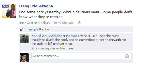 Pastor Isang, the beloved of Sam Shamoun, loves to antagonize innocent Muslims. I’m happy to see however that many of them seem to know the Bible better than he does. This conversation made me smile:
