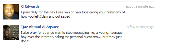 Earlier today I received a notification that a comment had been posted on this website. It wasn’t really a surprise to see who had written it, but I couldn’t keep a straight face after reading it. I’m still coping with the amount of humour this guy brings to the table. Naturally, I’m a bit perplexed though. You see, earlier yesterday evening, Mr. Edwards decided to author a post about me, “Pulling the cloak off the self appointed Da’ee“, which was fun and all to refute, which you can find here and here. However, as it seems, our respected opponent has a problem with the refutations. He thinks it’s creepy that I’m refuting his attacks on Islam and against me: