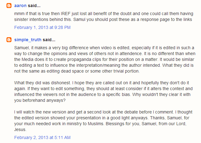A Rejoinder to Sam Shamoun: Christian Fans on Editing of Debate Videos