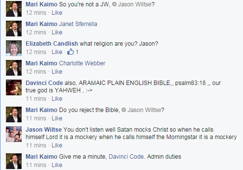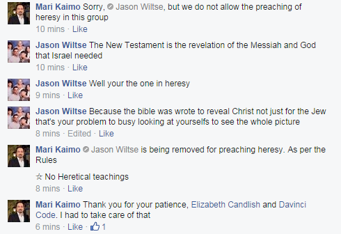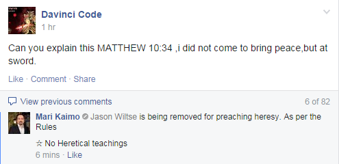 Mari Kaimo wastes no time, if you reject the Bible – you’re a heretic, which is odd in a group that is dedicated to Christian and Muslim dialogue. It suddenly made sense why I could find at most 1 or 2 active Muslims commenting in the group. They’ve been banning Muslims in a Christian-Muslim religious dialogue group because to them, Muslim beliefs were heretical.