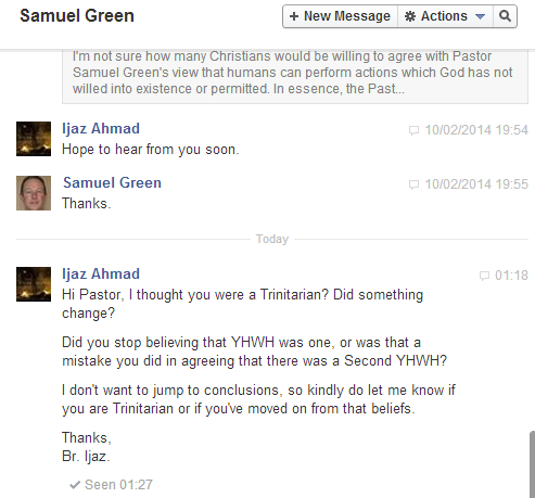 As you can see from the above photo. Pastor Green has since seen my message to him, inquiring about his change of doctrine and has decided not to respond. This clearly indicates he either screwed up badly or did not realise what he was supporting. I pray that he responds on the matter in a timely fashion.