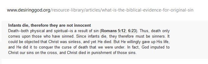 As a side note, what makes this original sin even worse is the fact that babies get to burn in hell for simply, being born: